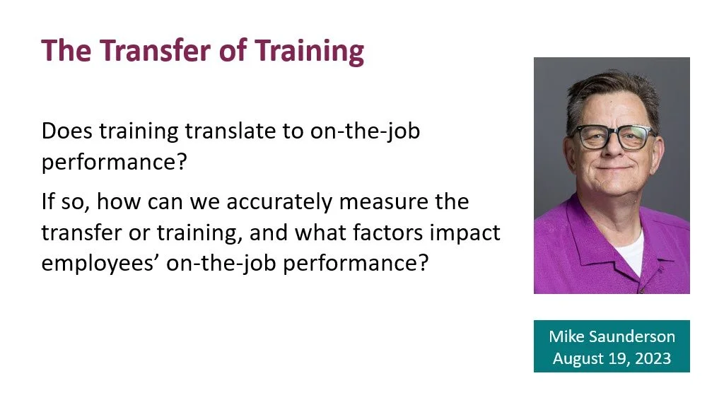 On September 3, 2024, I had the opportunity to talk with Guy Wallace about my research on the transfer of learning and what characteristics impact knowledge and skill transfer.
